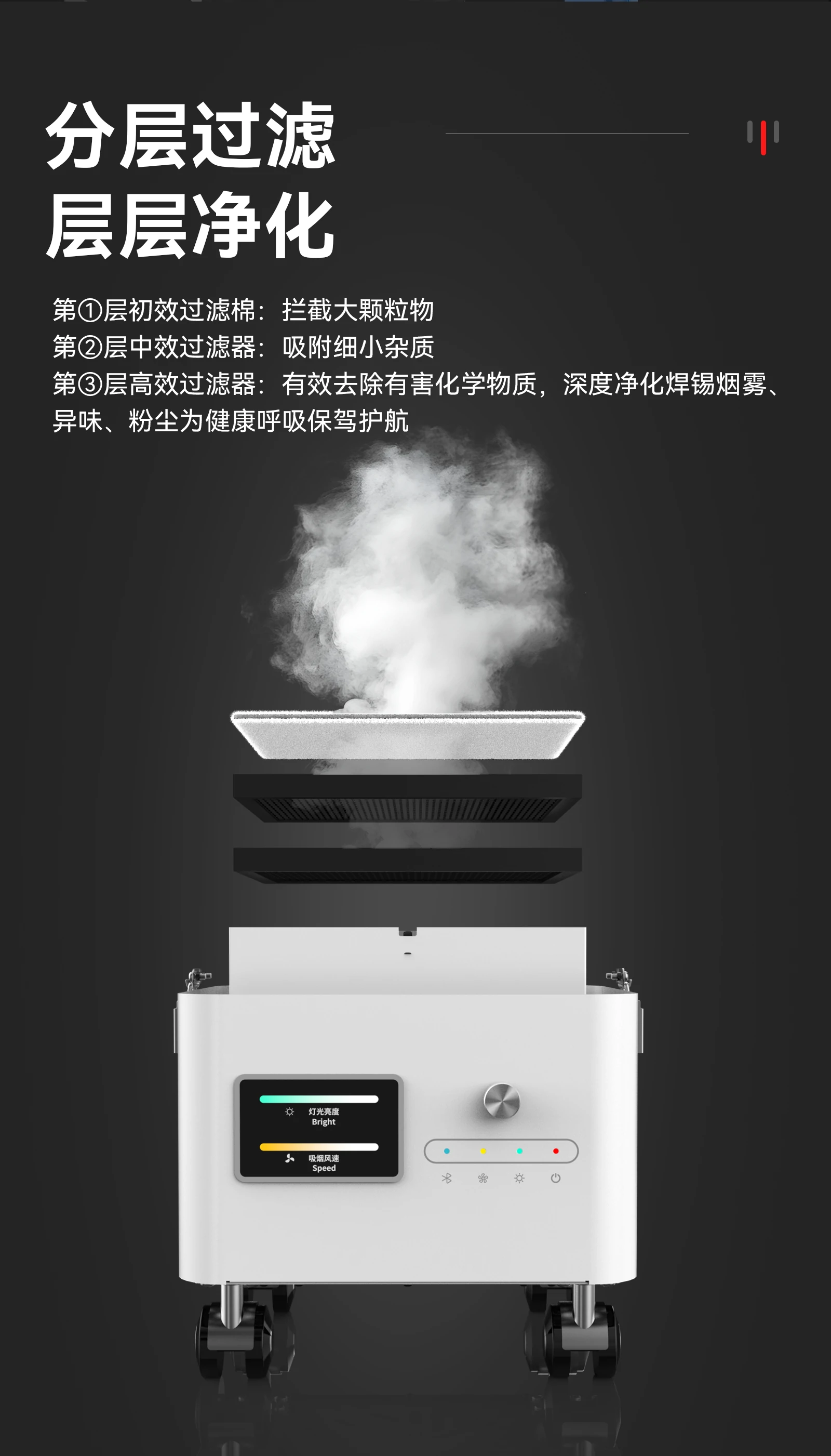 在电子焊接与精密维修之中,烟雾与粉尘是专注与健康的隐形对手,其中可能含有的重金属颗粒、树脂烟尘等有害物质,对呼吸健康危害极大。