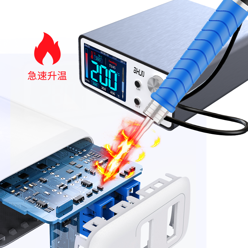 •加热芯与烙铁头一体化设计,减少热流失,升温迅速,回温快
