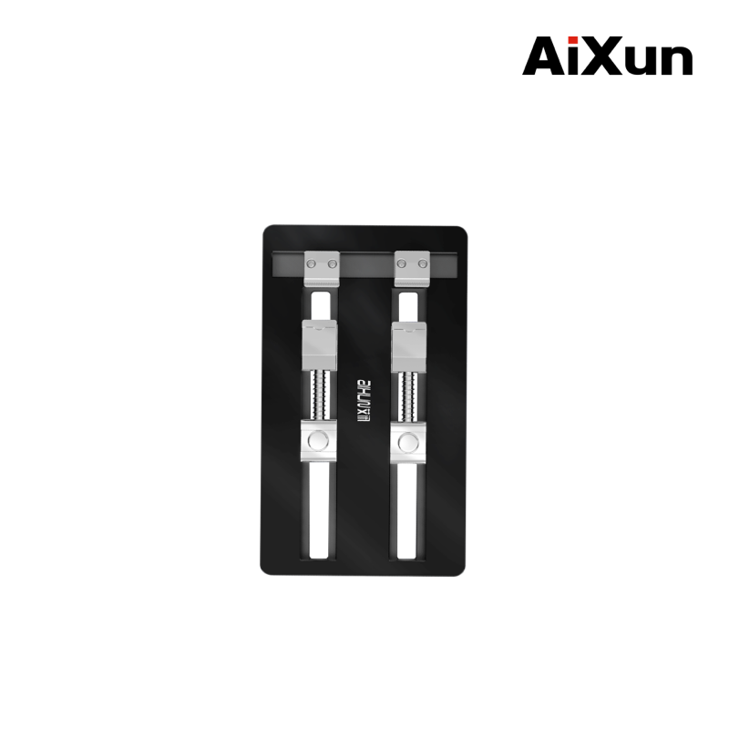 艾迅FT12第二代手机维修夹具集多种功能于一体,设计精密。采用双轨滑动自锁设计,可以用于iPhone和安卓主板、硬盘、cpu等IC类除胶,装夹方便快捷,且不会损坏主板。它由精密合金材料制成,具有高精度和更耐用的优点。精准双向卡槽设计,每个卡位刚刚好。滑扣夹头设计可以满足不同使用需求。高适配性,主板、芯片可随意搭配,拥有无限可能。显微镜下操作,稳定不移位,提升维修效率。