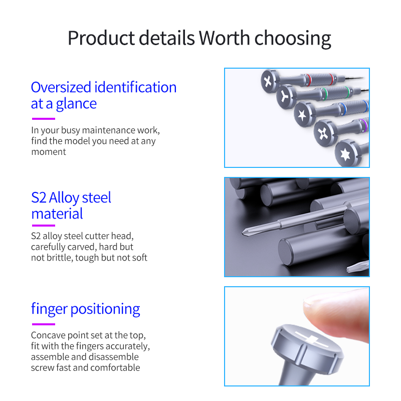 •应用广泛,可用于拆卸手机、摄像机、眼镜、电脑、平板电脑等。