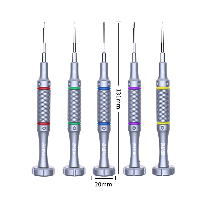 艾迅iS05 2D螺丝刀套装包括五种头部类型:外十字、三角形、五角、内十字和六角T2。一款一个颜色的设计,帮助您轻松找到所需型号,提高工作效率。它可以用于各种场景,如拆卸手机、相机、电视、眼镜、电脑、平板电脑等。高精度咬合螺丝,精致的手柄设计,可让用户握持舒适,防滑,使工作更轻松。360°进口轴承,顺滑平稳,精美解压,在工作之余也能增加维修乐趣。